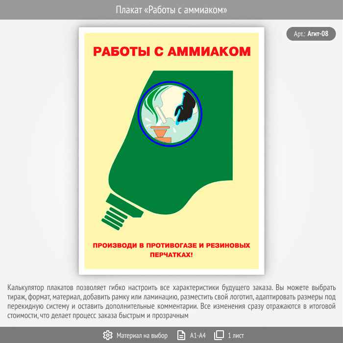 Плакат «Работы с аммиаком» (Агит-08, 1 лист) в Пензе купить