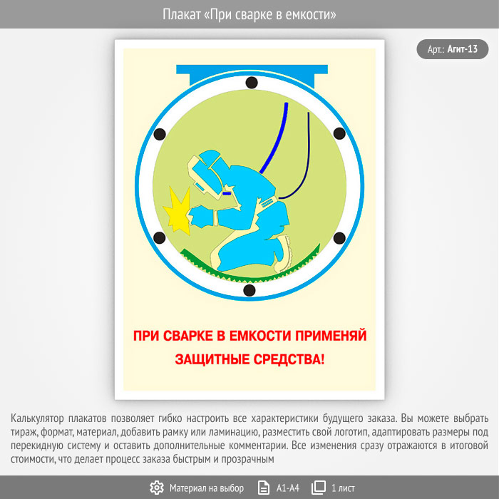 Плакат «При сварке в емкости» (Агит-13, 1 лист) в Пензе купить