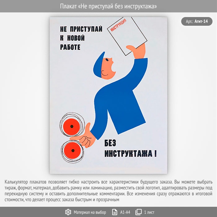 Плакат «Не приступай без инструктажа» (Агит-14, 1 лист) в Пензе купить