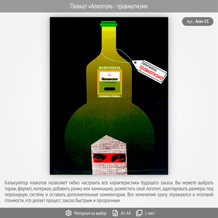 Плакат «Алкоголь - травматизм» (Агит-21, 1 лист) в Пензе купить