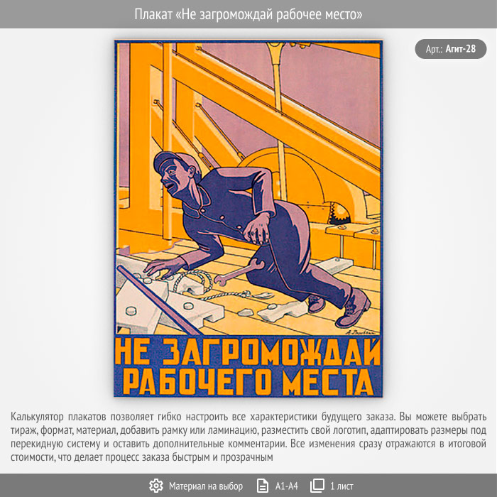 Плакат «Не загромождай рабочее место» (Агит-28, 1 лист) в Пензе купить