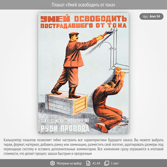 Плакат «Умей освободить от тока» (Агит-34, 1 лист) в Пензе купить