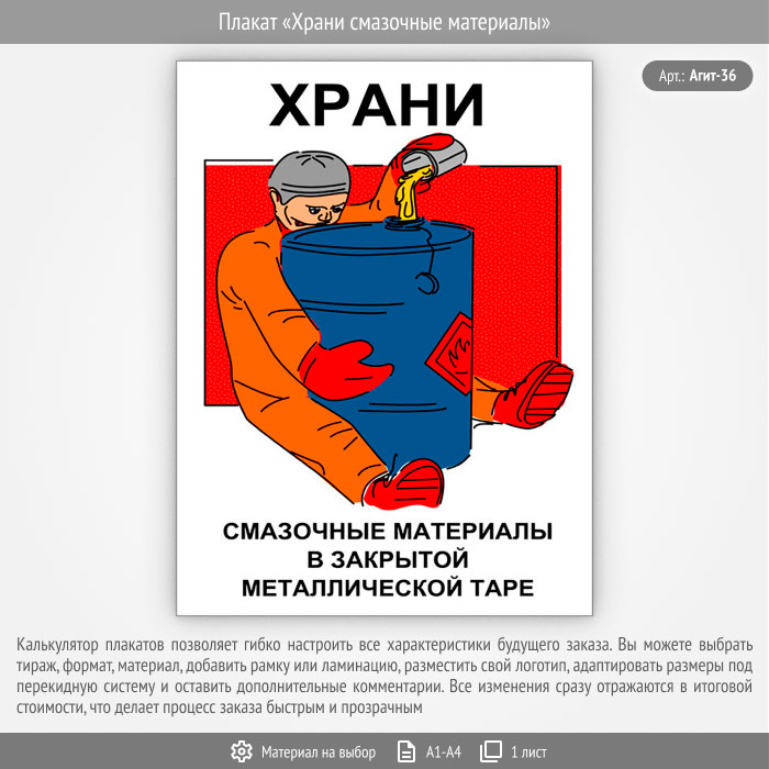 Плакат «Храни смазочные материалы» (Агит-36, 1 лист) в Пензе купить