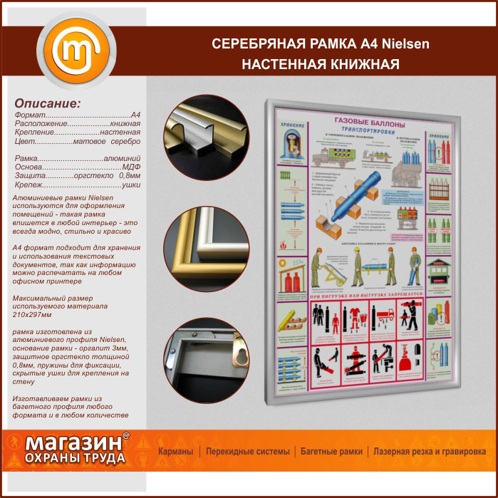 Багетная настенная рамка «Nielsen» А4 формата, книжная, матовое серебро в Пензе купить