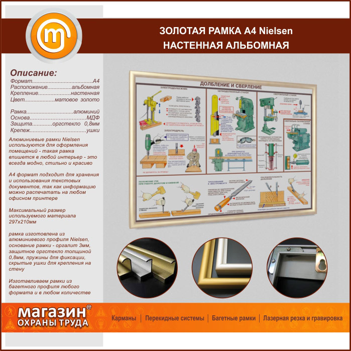 Багетная настенная рамка «Nielsen» А4 формата, альбомная, матовое золото в Пензе купить