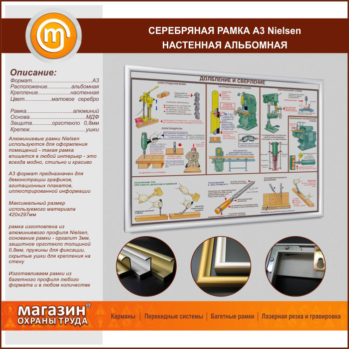 Багетная настенная рамка «Nielsen» А3 формата, альбомная, матовое серебро в Пензе купить
