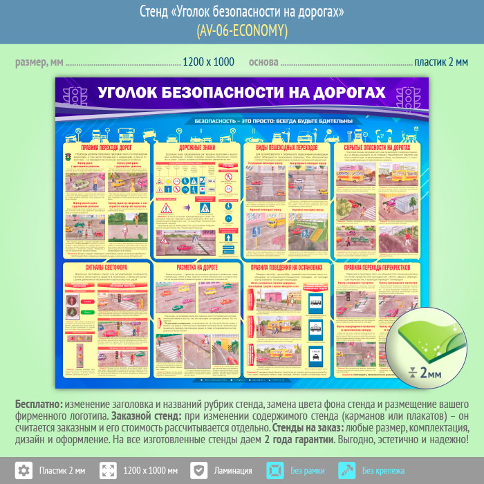 Стенд «Уголок безопасности на дорогах» (AV-06-ECONOMY) в Пензе купить