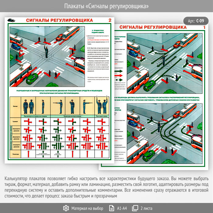 Плакаты «Сигналы регулировщика» (С-09, 2 листа) в Пензе купить
