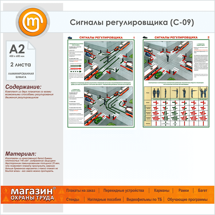Плакаты «Сигналы регулировщика» (С-09, ламинированная бумага, А2, 2 листа) в Пензе купить
