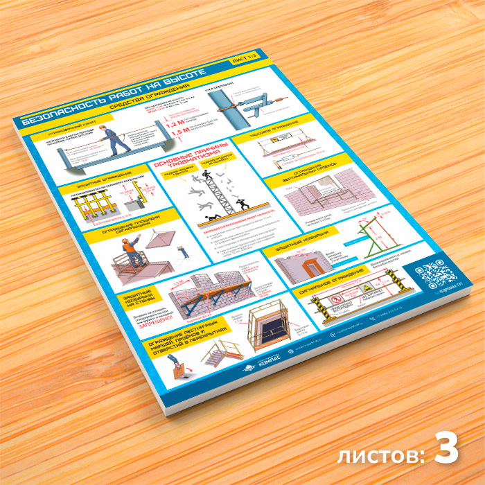 Плакаты «Безопасность работ на высоте» (М-52, ламинированная бумага, А2, 3 листа) в Пензе купить
