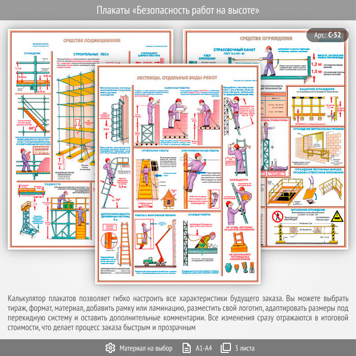 Плакаты «Безопасность работ на высоте» (С-52, 3 листа) в Пензе купить