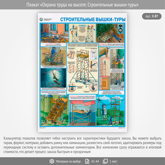Плакат «Охрана труда на высоте. Строительные вышки-туры» (С-87, 1 лист) в Пензе купить