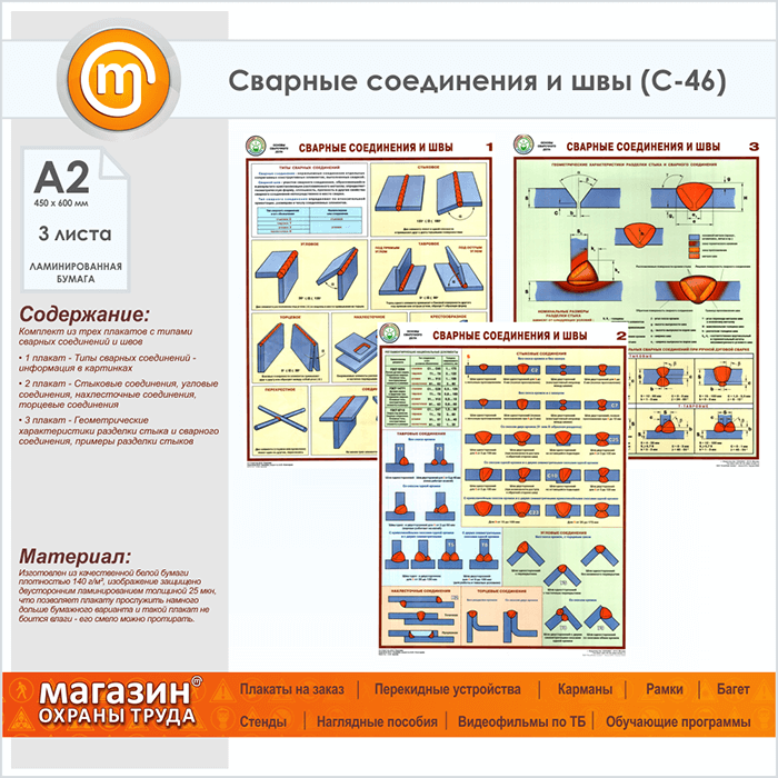 Плакаты «Сварные соединения и швы» (С-46, ламинированная бумага, А2, 3 листа) в Пензе купить