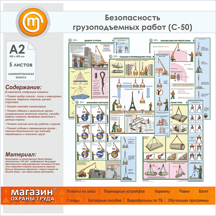 Плакаты «Безопасность грузоподъемных работ» (С-50, ламинированная бумага, А2, 5 листов) в Пензе купить