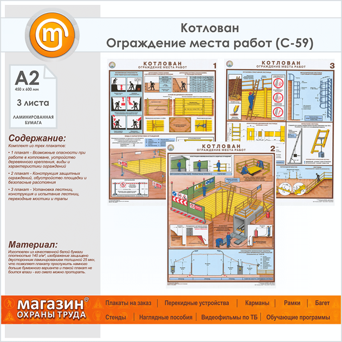 Плакаты «Котлован. Ограждение места работ» (С-59, ламинированная бумага, А2, 3 листа) в Пензе купить