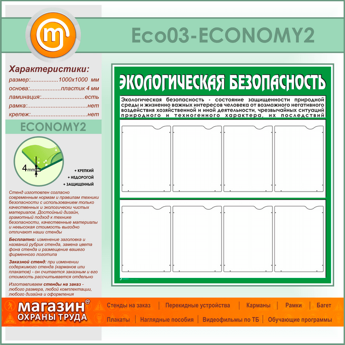 Стенд «Экологическая безопасность» с 8 карманами (ECO-03-ECONOMY2) в Пензе купить