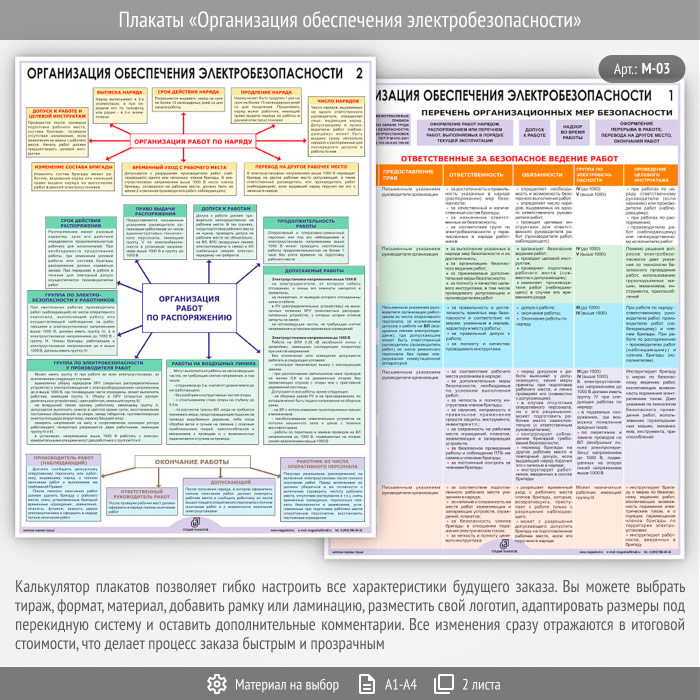 Плакаты «Организация обеспечения электробезопасности» (М-03, 2 листа) в Пензе купить