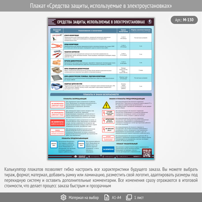 Плакат «Средства защиты, используемые в электроустановках» с QR (М-130, 1 лист) в Пензе купить