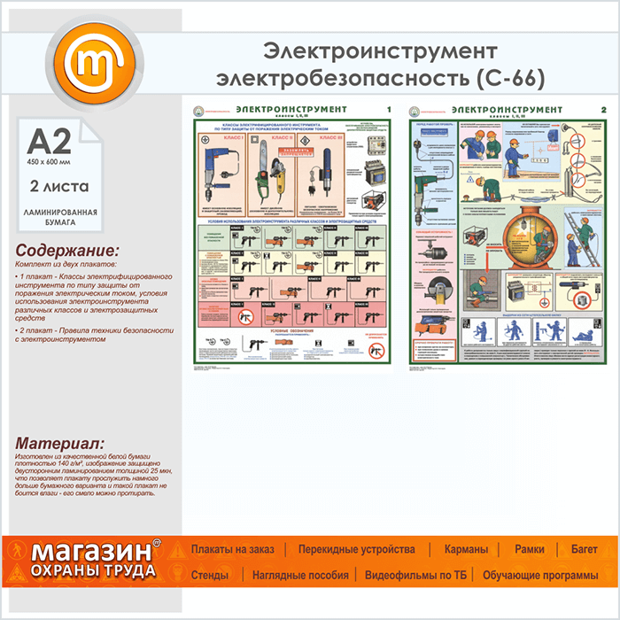 Плакаты «Электроинструмент - электробезопасность» (С-66, ламинированная бумага, А2, 2 листа) в Пензе купить