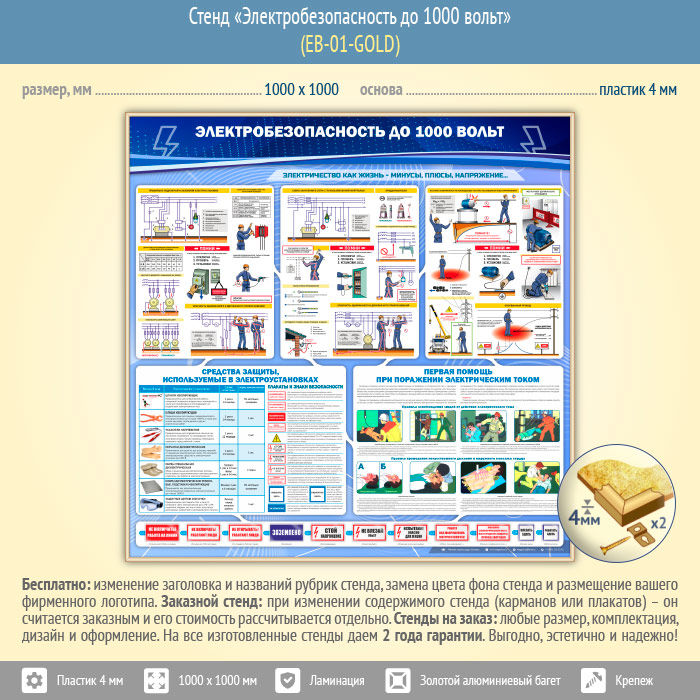 Стенд «Электробезопасность до 1000 вольт» (EB-01-GOLD) в Пензе купить