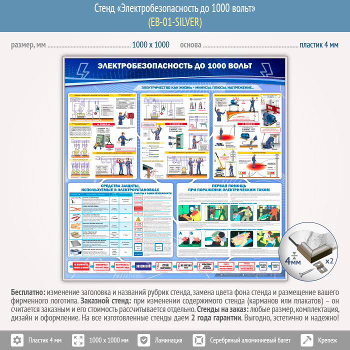 Стенд «Электробезопасность до 1000 вольт» (EB-01-SILVER) в Пензе купить
