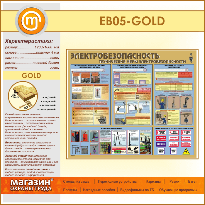 Стенд «Электробезопасность. Технические меры электробезопасности» (EB-05-GOLD) в Пензе купить