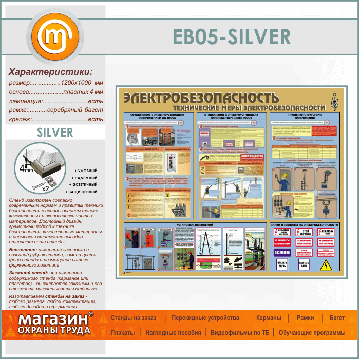 Стенд «Электробезопасность. Технические меры электробезопасности» (EB-05-SILVER) в Пензе купить