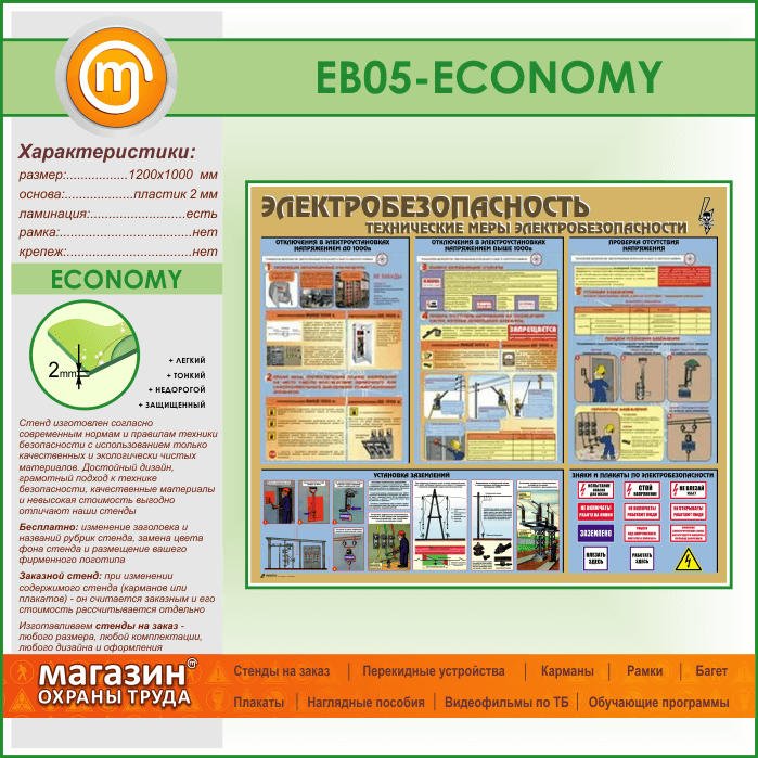 Стенд «Электробезопасность. Технические меры электробезопасности» (EB-05-ECONOMY) в Пензе купить