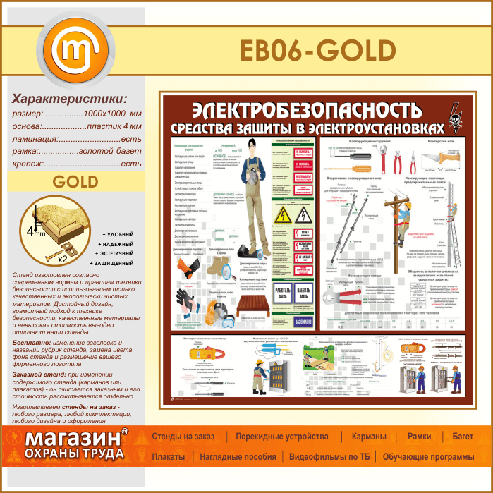 Стенд «Электробезопасность. Средства защиты в электроустановках» (EB-06-GOLD) в Пензе купить