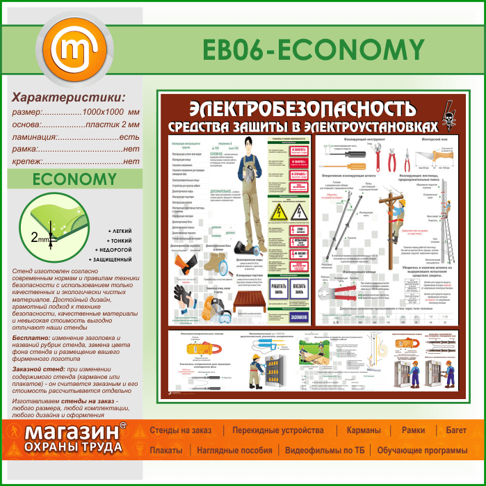 Стенд «Электробезопасность. Средства защиты в электроустановках» (EB-06-ECONOMY) в Пензе купить