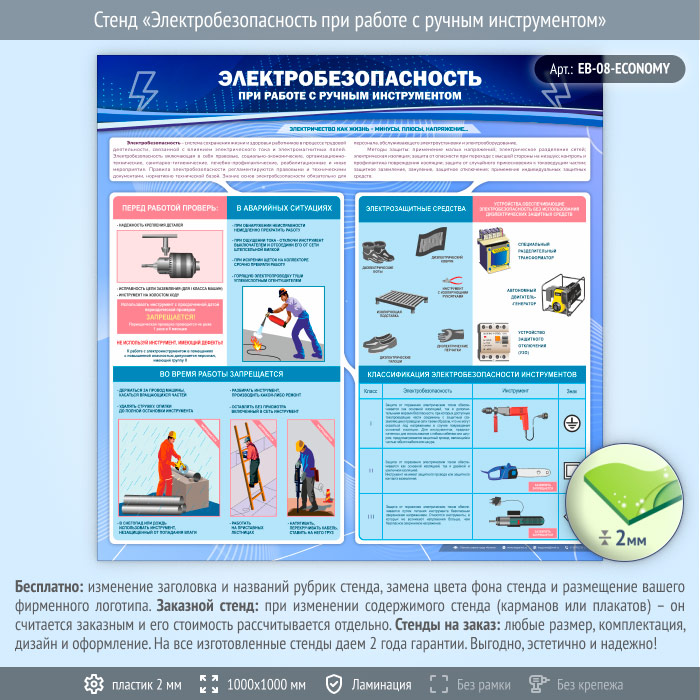 Стенд «Электробезопасность при работе с ручным инструментом» (EB-08-ECONOMY) в Пензе купить