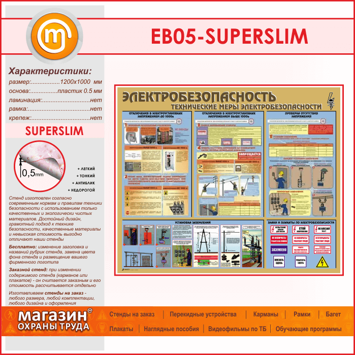 Стенд «Электробезопасность. Технические меры электробезопасности» (EB-05-SUPERSLIM) в Пензе купить