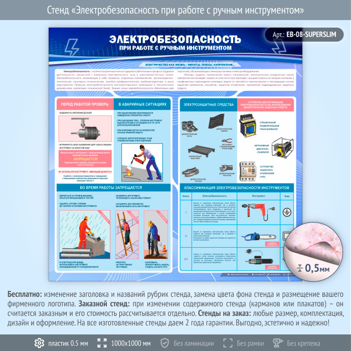Стенд «Электробезопасность при работе с ручным инструментом» (EB-08-SUPERSLIM) в Пензе купить