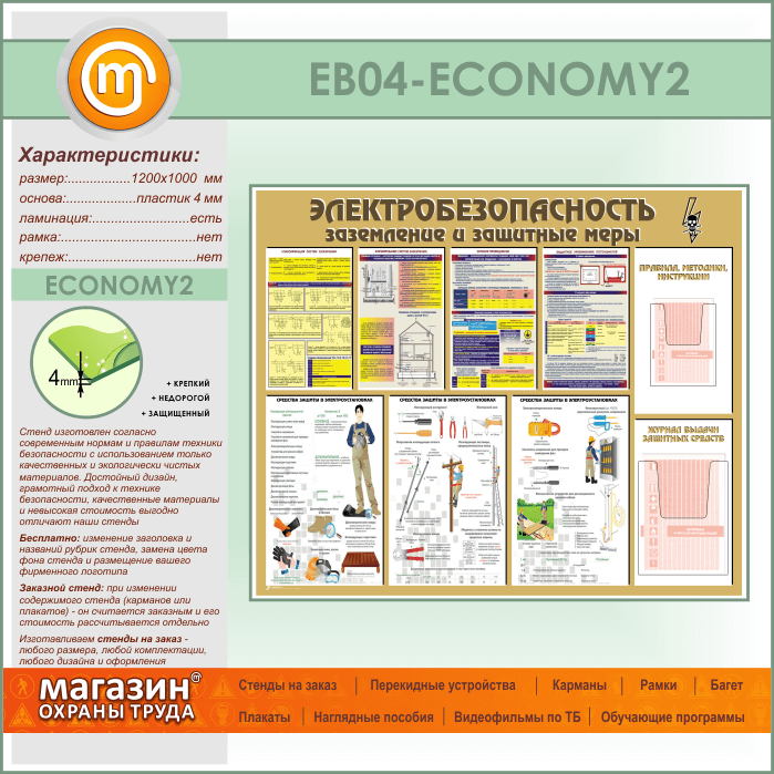 Стенд «Электробезопасность. Заземление и защитные меры» с 2 объемными карманами (EB-04-ECONOMY2) в Пензе купить