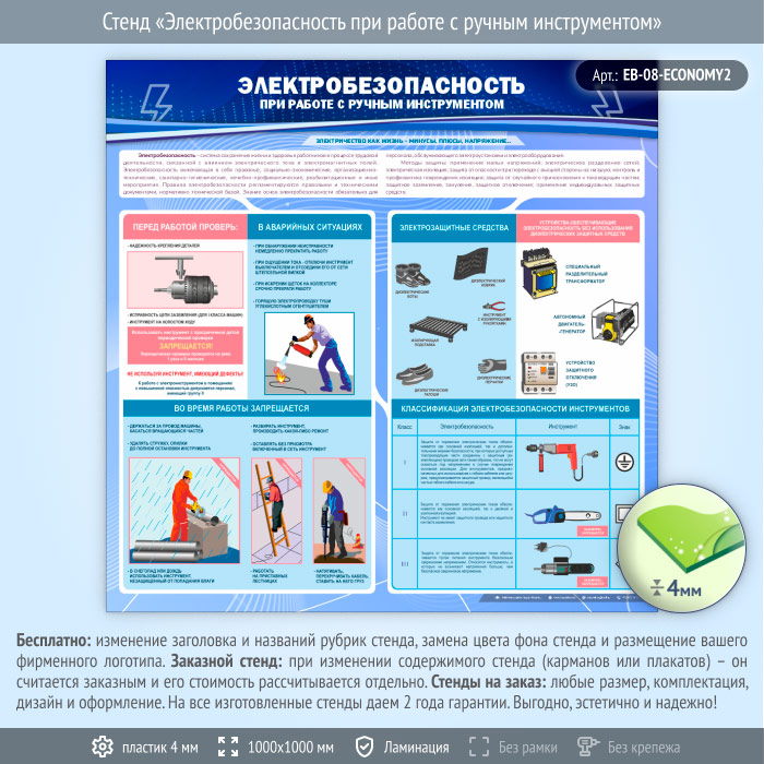 Стенд «Электробезопасность при работе с ручным инструментом» (EB-08-ECONOMY2) в Пензе купить