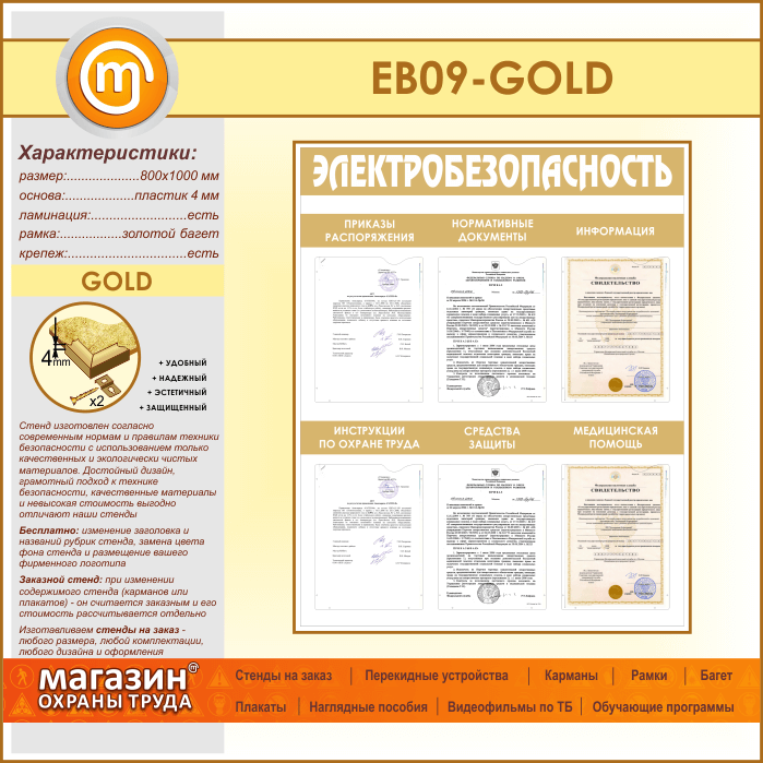 Стенд «Электробезопасность» с 6 карманами (EB-09-GOLD) в Пензе купить
