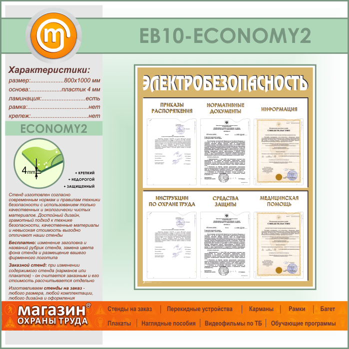 Стенд «Электробезопасность» с 6 карманами (EB-10-ECONOMY2) в Пензе купить