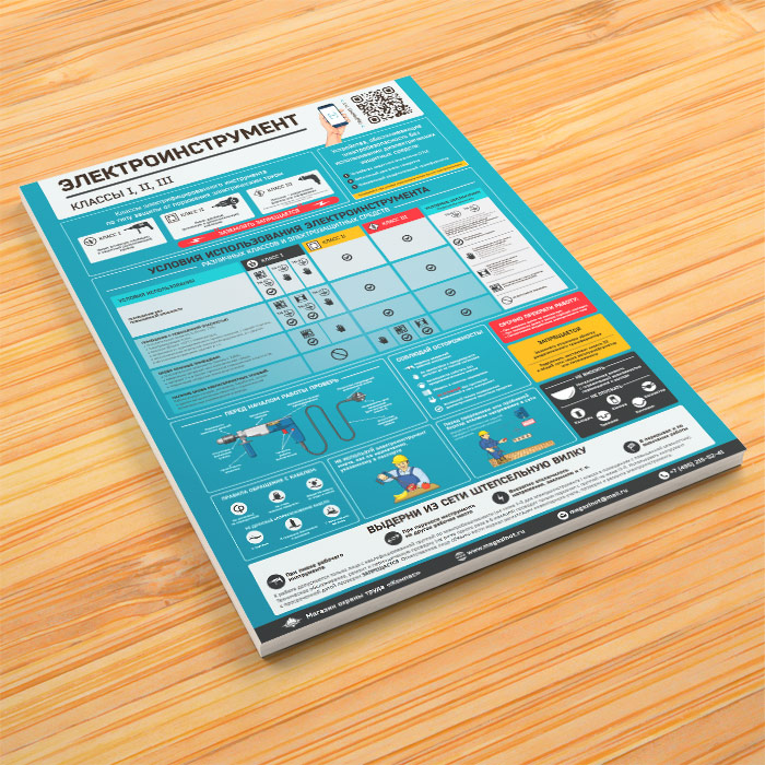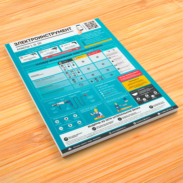 Плакат «Электроинструмент - электробезопасность» (М-66, ламинированная бумага, А2, 1 лист) в Пензе купить