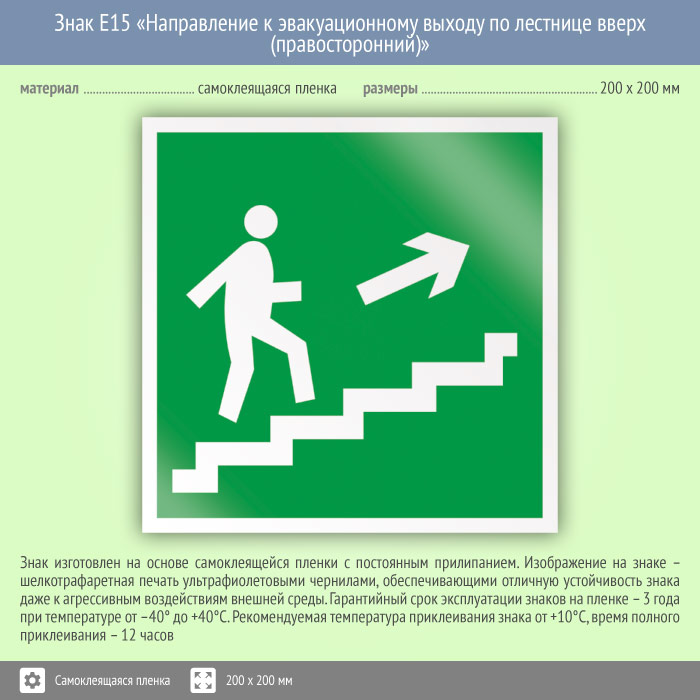 Знак E15 «Направление к эвакуационному выходу по лестнице вверх (правосторонний)» (пленка, 200х200 мм) в Пензе купить