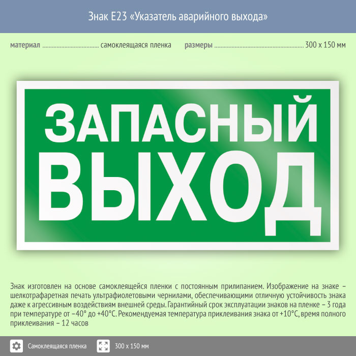Знак E23 «Указатель запасного выхода» (устаревший) (пленка, 300х150 мм) в Пензе купить