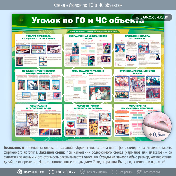 Стенд «Уголок по ГО и ЧС объекта» (GO-21-SUPERSLIM) в Пензе купить