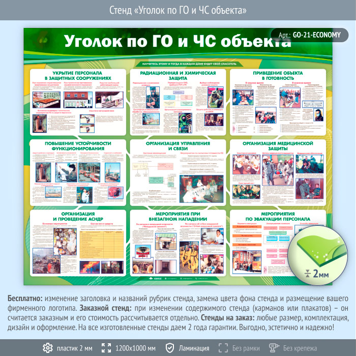 Стенд «Уголок по ГО и ЧС объекта» (GO-21-ECONOMY) в Пензе купить