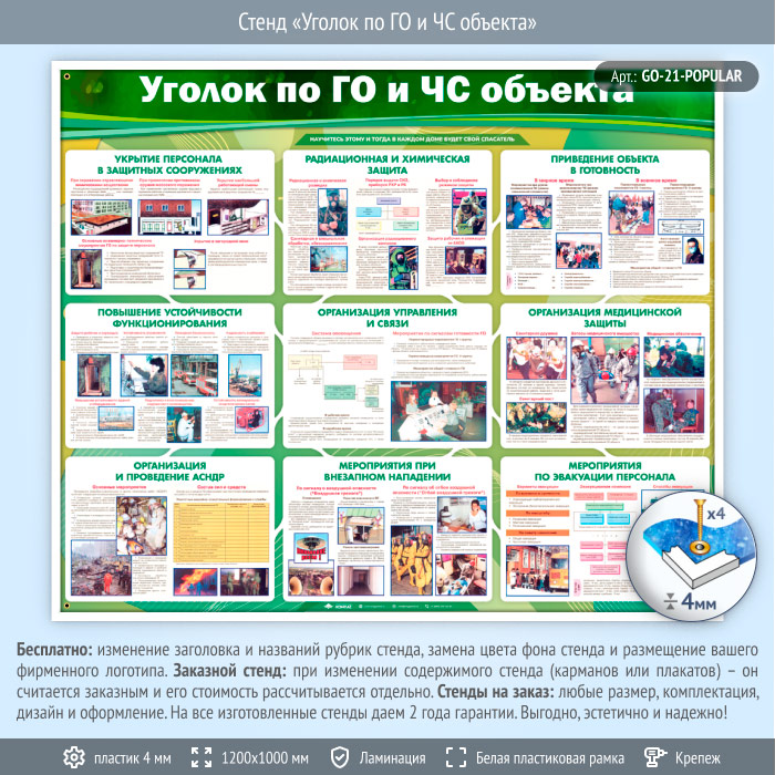 Стенд «Уголок по ГО и ЧС объекта» (GO-21-POPULAR) в Пензе купить