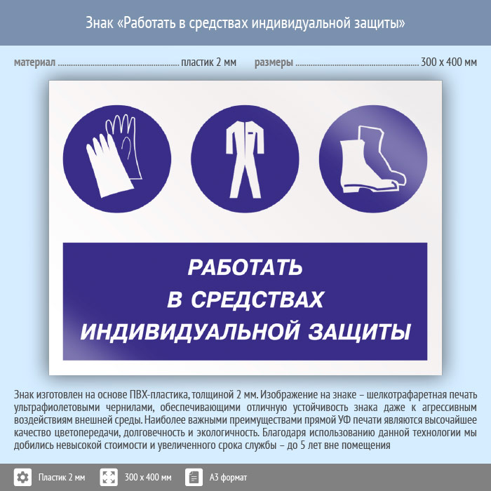 Знак «Работать в средствах индивидуальной защиты», КЗ-81 (пластик, 400х300 мм) в Пензе купить