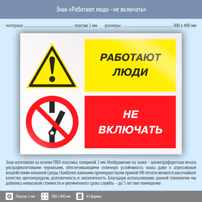 Знак «Работают люди - не включать», КЗ-83 (пластик, 400х300 мм) в Пензе купить