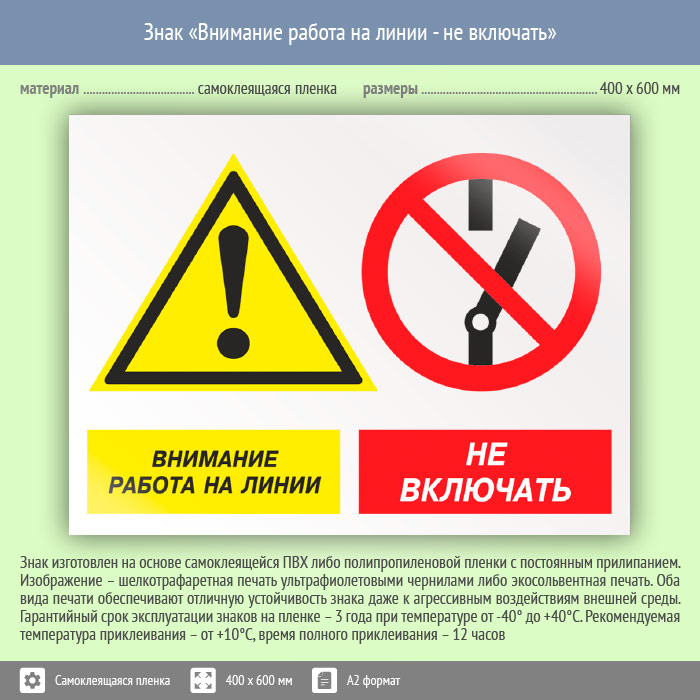 Знак «Внимание работа на линии - не включать», КЗ-16 (пленка, 600х400 мм) в Пензе купить