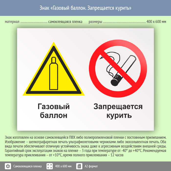 Знак «Газовый баллон. Запрещается курить», КЗ-18 (пленка, 600х400 мм) в Пензе купить