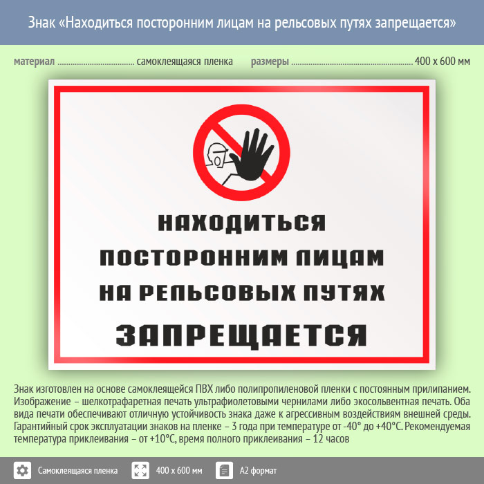 Знак «Находиться посторонним лицам на рельсовых путях запрещается», КЗ-25 (пленка, 600х400 мм) в Пензе купить