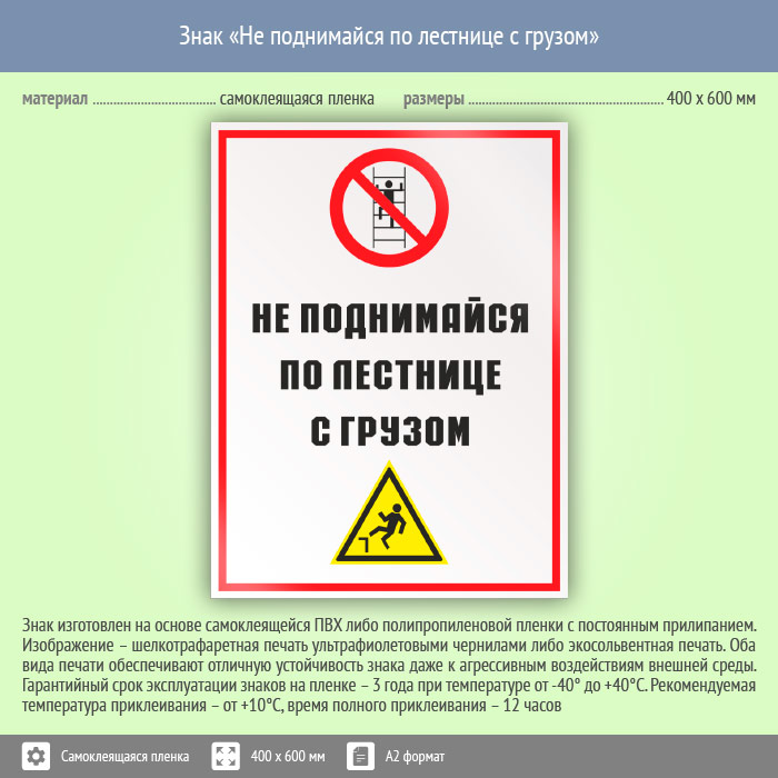 Знак «Не поднимайся по лестнице с грузом», КЗ-28 (пленка, 400х600 мм) в Пензе купить
