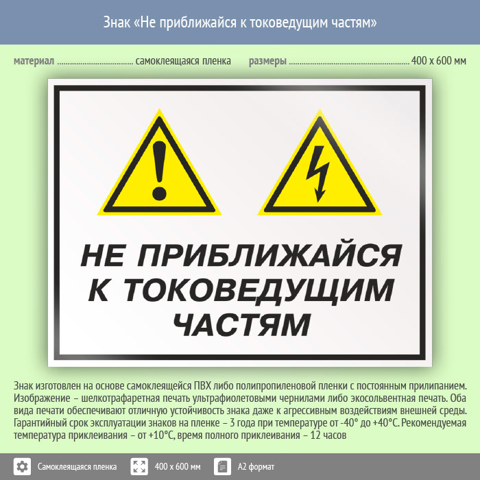 Знак «Не приближайся к токоведущим частям», КЗ-29 (пленка, 600х400 мм) в Пензе купить